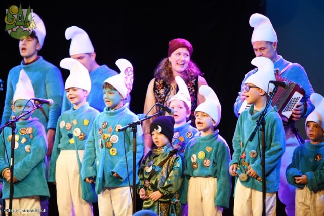 Frösche geben an der Fasnacht gesanglich und musikalisch ihr Bestes.